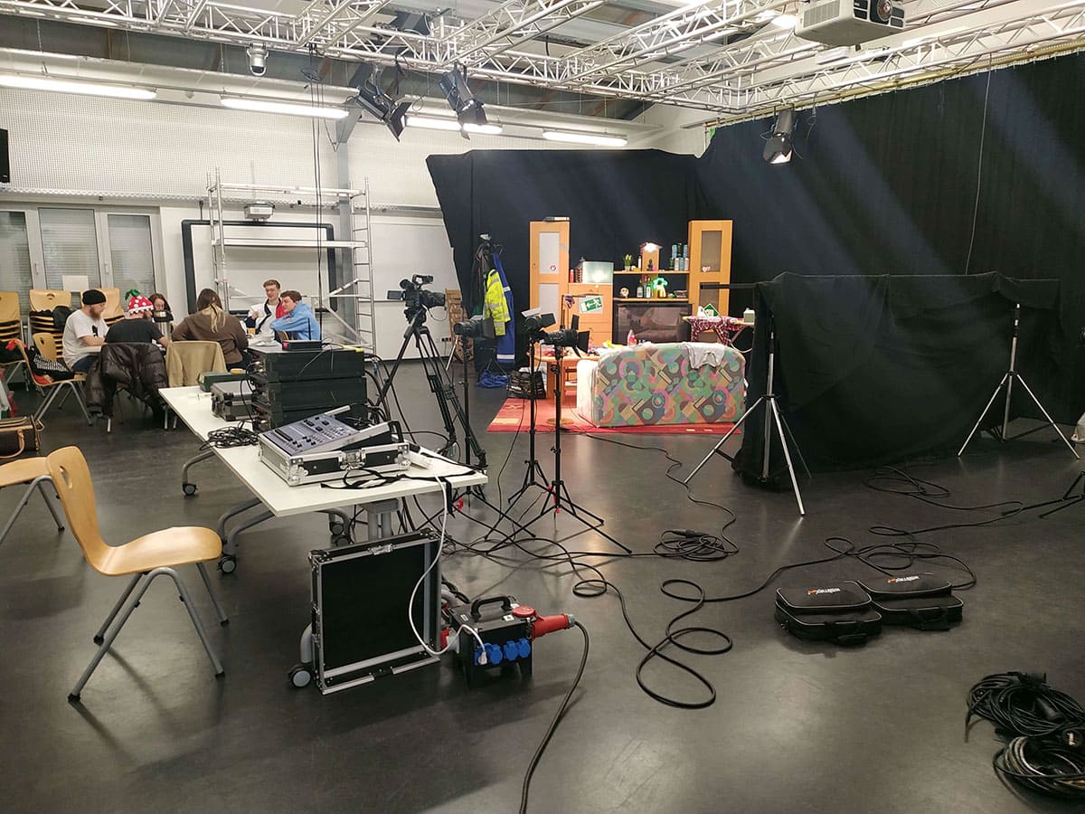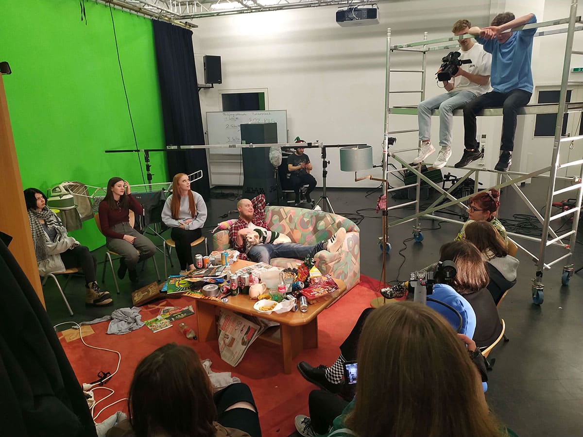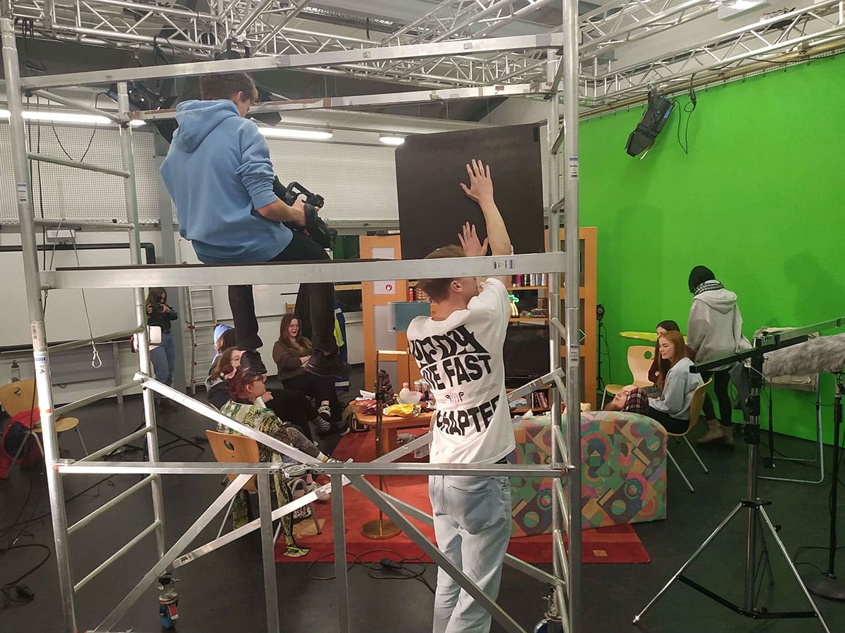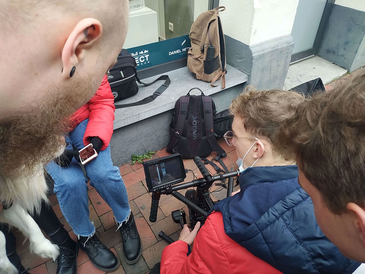 Schüler der Fachstufe 12 des Schwerpunktes Gestaltungs- und Medientechnik des Beruflichen Gymnasium bei den Dreharbeiten zum Beitrag “Influencer n21”, Wettbewerb des Landes Niedersachsen.