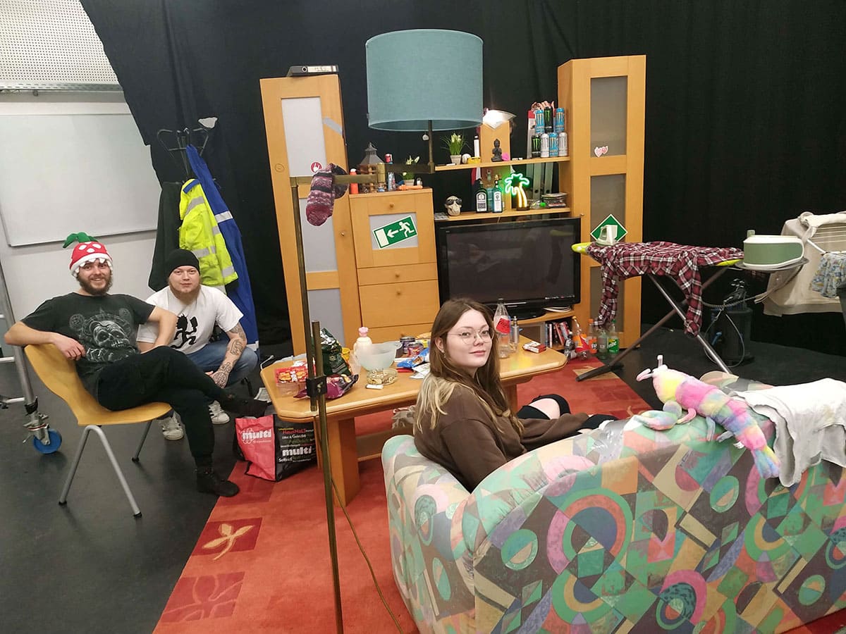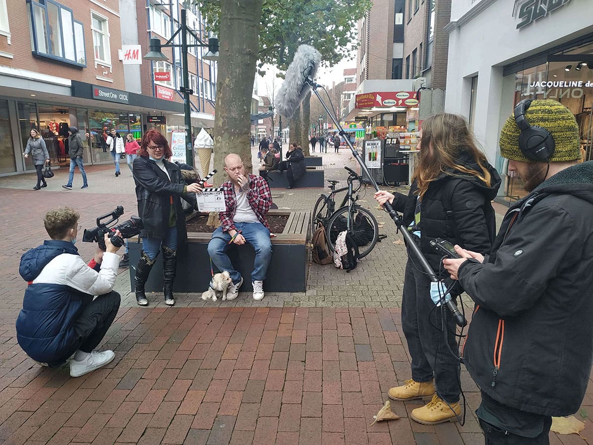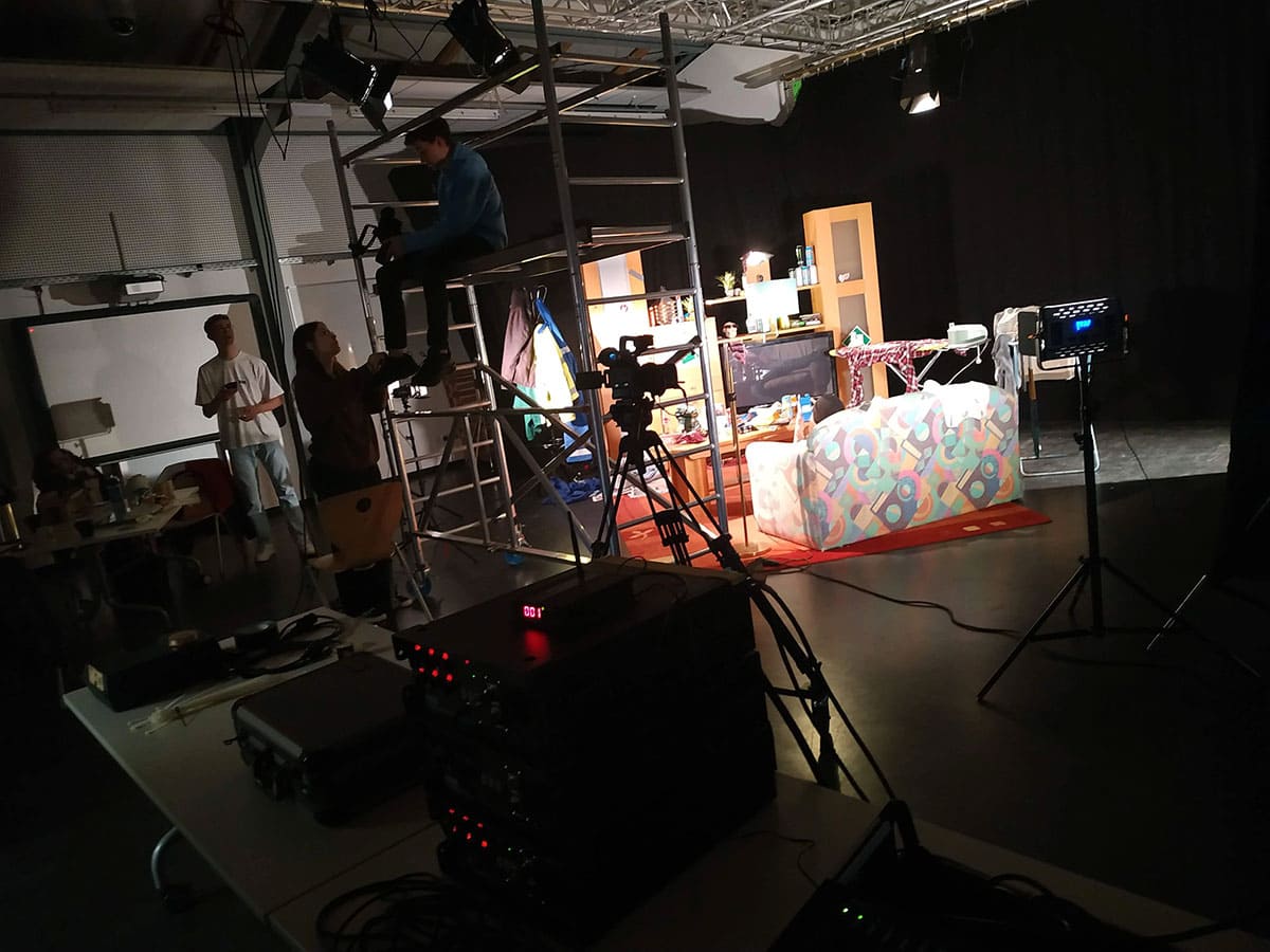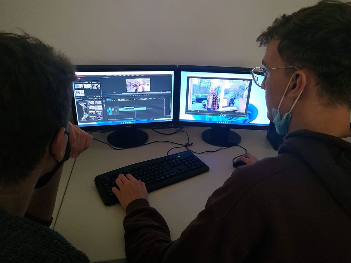 Schüler der Fachstufe 12 des Schwerpunktes Gestaltungs- und Medientechnik des Beruflichen Gymnasium bei den Dreharbeiten zum Beitrag “Influencer n21”, Wettbewerb des Landes Niedersachsen.