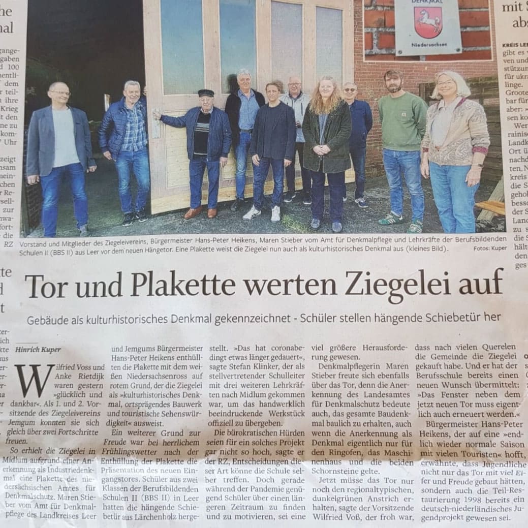 Schulklassen erstellen neues Schiebtor für die Ziegelei Midlum
